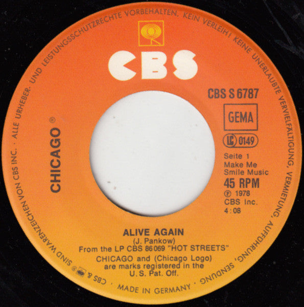 Chicago - Alive Again (7", Single)
