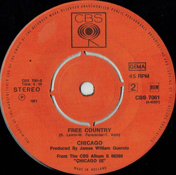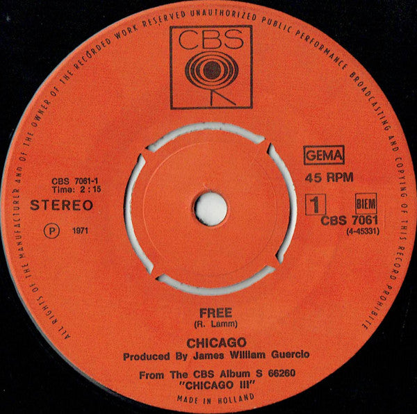 Chicago - Free (7", Single)
