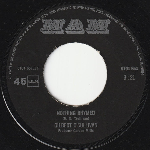 Gilbert O'Sullivan - Nothing Rhymed / Everybody Knows (7", Single, Mono)