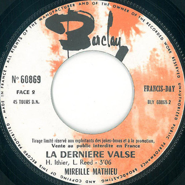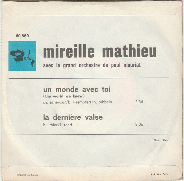 Mireille Mathieu - Un Monde Avec Toi / La Dernière Valse (7", Single, Ltd, Promo)