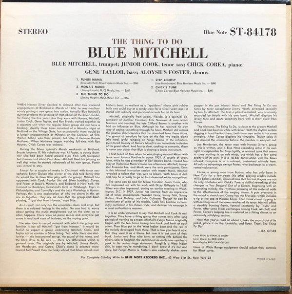 Blue Mitchell - The Thing To Do (LP, Album, RP)