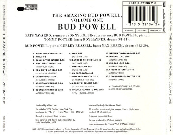Bud Powell - The Amazing Bud Powell, Volume One (CD, Album, RE, RM)