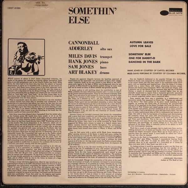 Cannonball Adderley - Somethin' Else (LP, Album, RE)