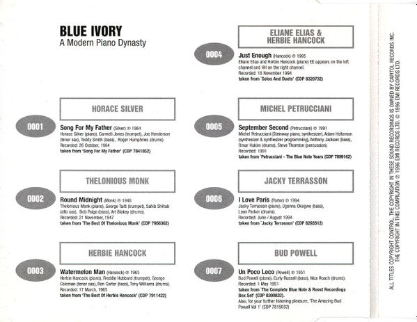 On Track 4 Herbie Hancock Plays on the left channel, Eliane Elias on the right.
