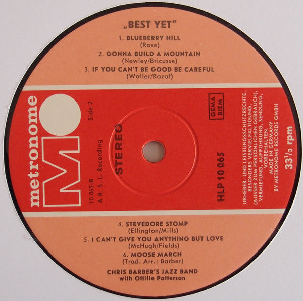 Chris Barber's Jazz Band With Ottilie Patterson - Best Yet (LP)