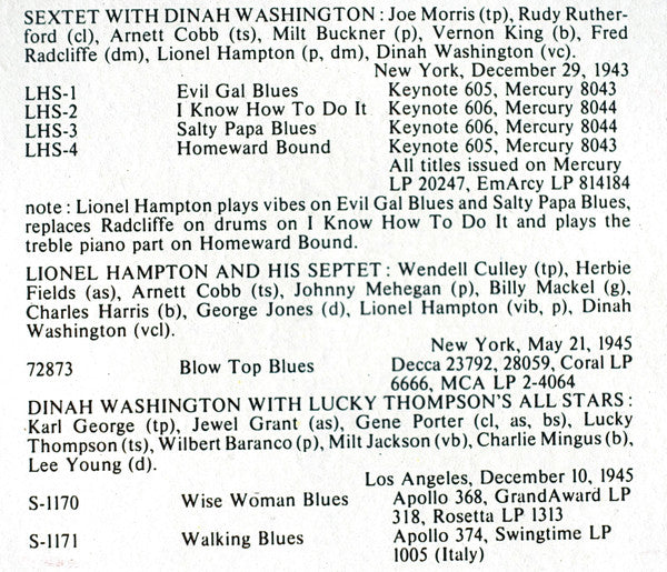 A6. Dinah Washington, Lucky Thompson's All Stars - Wise Woman Blues 2:46