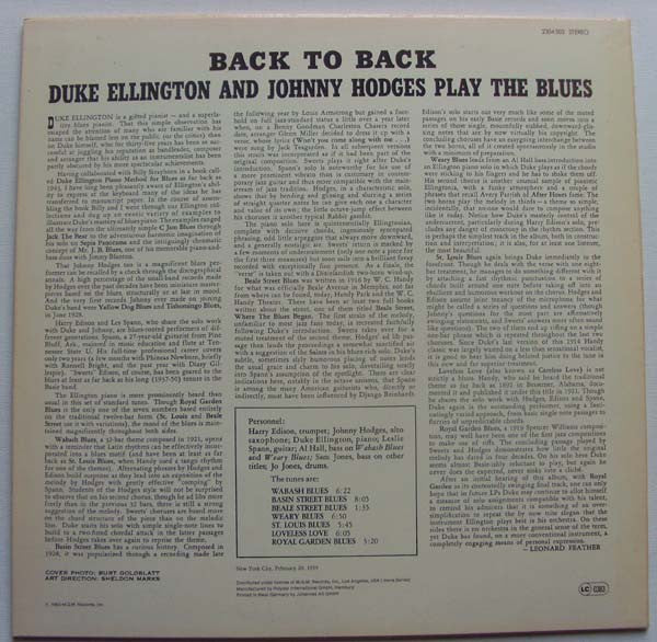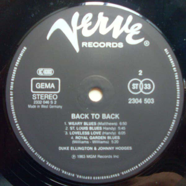 Duke Ellington & Johnny Hodges - Back To Back (Duke Ellington And Johnny Hodges Play The Blues) (LP, Album, RE)