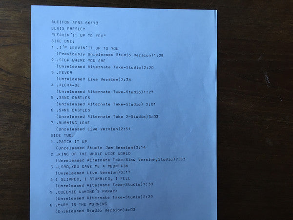 Elvis Presley - Leavin' It Up To You (Unreleased Studio And Live Concert Masters 1961-1973) (10", Unofficial)