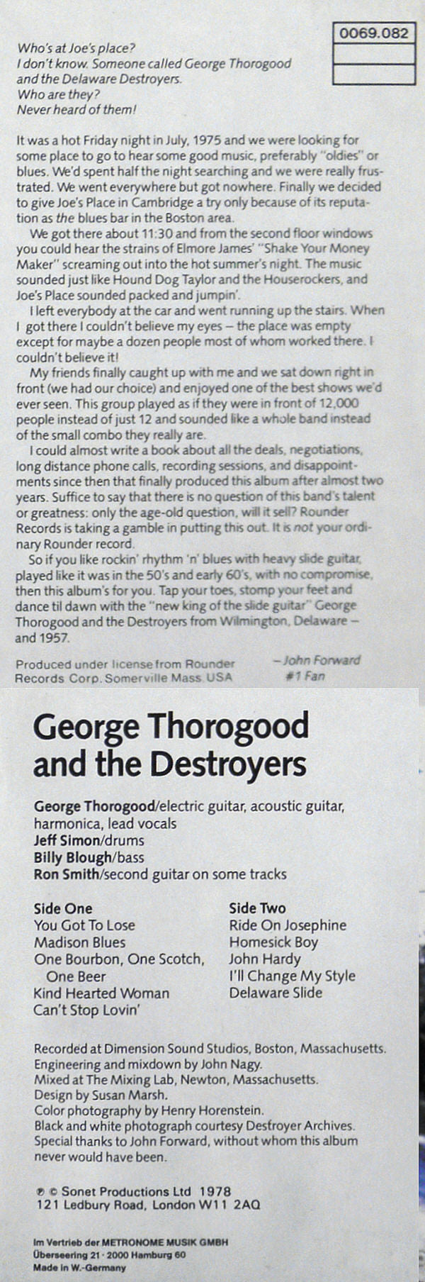 George Thorogood & The Destroyers - George Thorogood And The Destroyers (LP, Album)