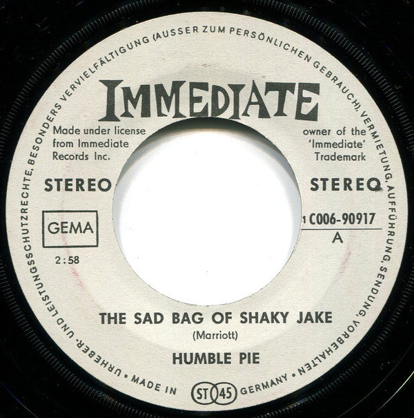 Humble Pie - The Sad Bag Of Shaky Jake / Cold Lady (7", Single, M/Print)