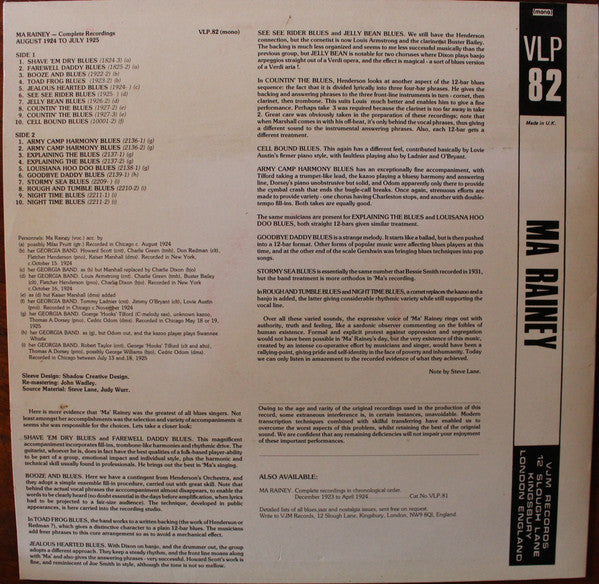 Ma Rainey - Complete Recordings In Chronological Order (August 1924 To July 1925) (LP, Comp, Mono)