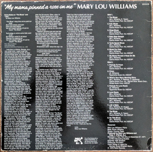 Mary Lou Williams - My Mama Pinned A Rose On Me (LP, Album)