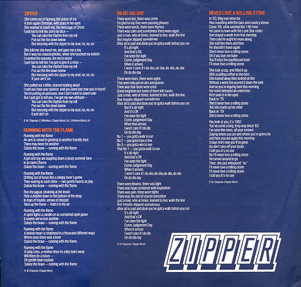 Some copies released with a sticker on front with German "Zipper Tour" dates.