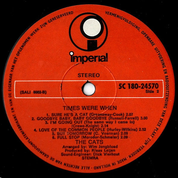 LP1 (5C 180-24 570) previously released as 'Cats As Cats Can' - SALI 8002 (cat# also mentioned on the centerlabel) LP2 (5C 180-24 571) previously released as 'Cats' - SALI 8017 (cat# also mentioned on the centerlabel)