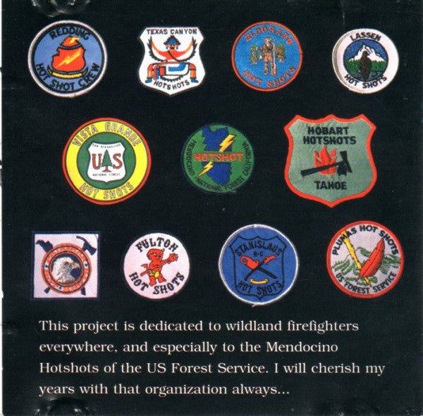 Until you've walked in the boots of a wildland firefighter you have no idea of just how much they give of themselves physically and emotionally for very little pay or appreciation. In "Mendocino Hotshot Blues" I have tried to pass along a taste of what it's like. I've seen the day turn night as the smoke got so thick it blocked out the sun. I've seen the night turn day as flames lit up the sky like the sun had just come back up. I've seen fear on mens faces as things got out of hand and they began to ponder the possibilities. There are all kinds of blues in this world. Some you are born into, some just happen, and others you create yourself. Firefighters choose to do what they do and must accept the consequences. We should all be very thankful they have made that choice. This is my way of saying thanks.