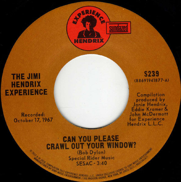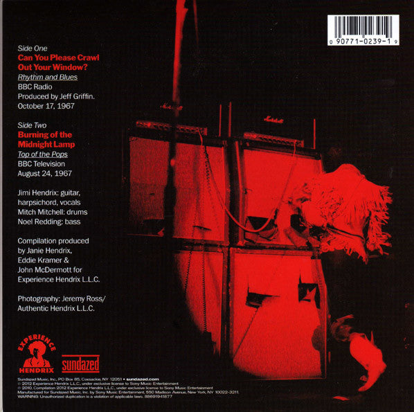 Side A: Rhythm and Blues, BBC Radio, October 17, 1967 Special Rider Music SESAC Side B: Top of the Pops, BBC Television, August 24, 1967 Experience Hendrix L.L.C. © 2012 Experience Hendrix L.L.C., under exclusive license to Sony Music Entertainment. ℗ 2010, Compilation 2012 Experience Hendrix L.L.C., under exclusive license to Sony Music Entertainment. Record Store Day release.