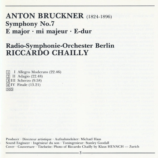 Anton Bruckner / Radio-Symphonie-Orchester Berlin, Riccardo Chailly - Symphony No. 7 (CD)