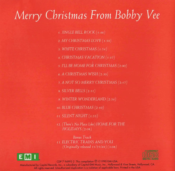 Bobby Vee - Merry Christmas From Bobby Vee (CD, Album, RE)