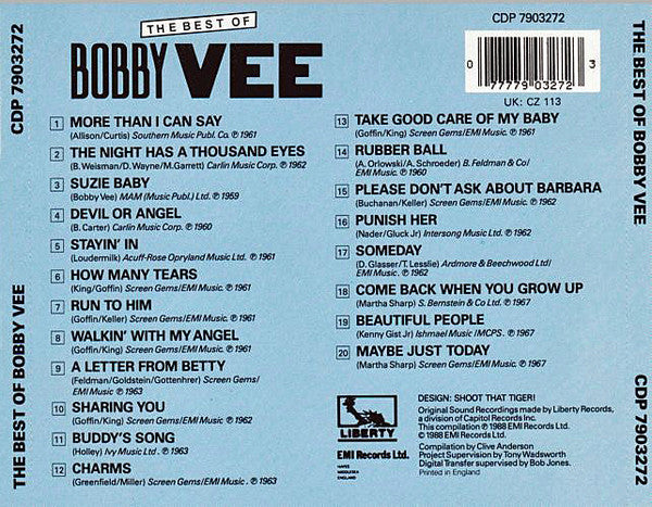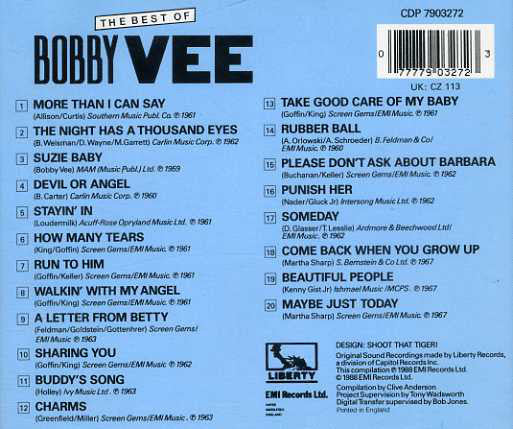 Bobby Vee - The Best Of Bobby Vee (CD, Comp, RE)