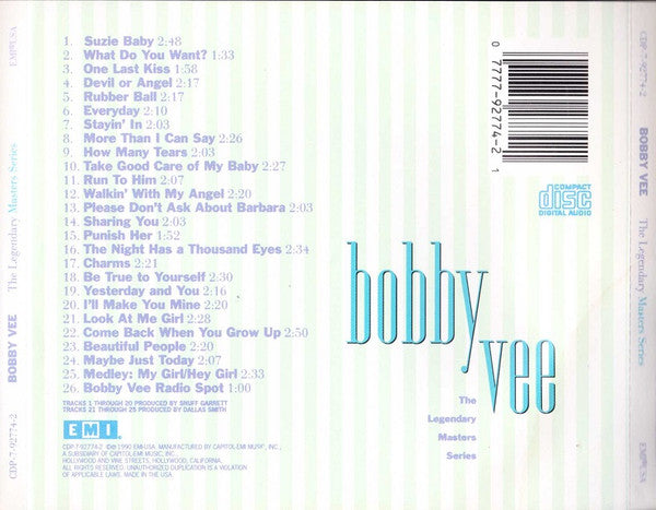 Bobby Vee - The Legendary Masters Series (CD, Comp, RM, RP)