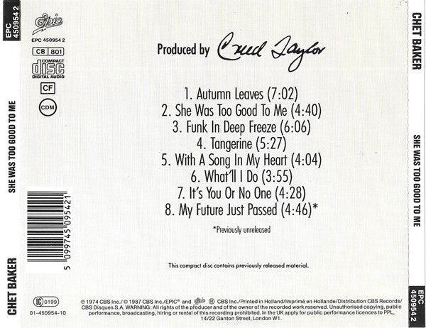 Chet Baker - She Was Too Good To Me (CD, Album, RE)