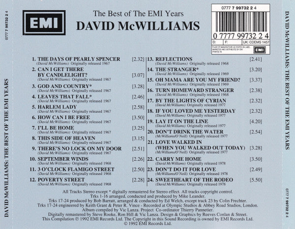 David McWilliams - The Best Of The EMI Years (The Days Of Pearly Spencer) (CD, Comp, RM)