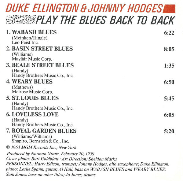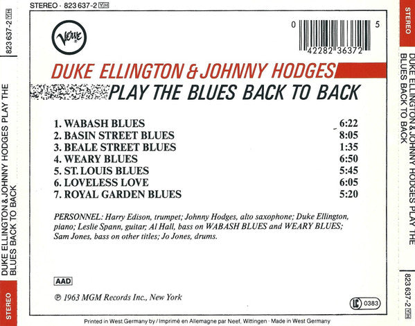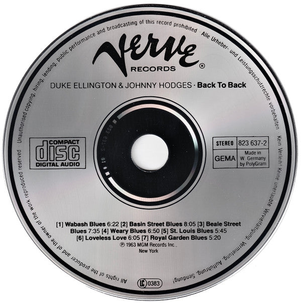Duke Ellington & Johnny Hodges - Back To Back (Duke Ellington And Johnny Hodges Play The Blues) (CD, Album, RE)