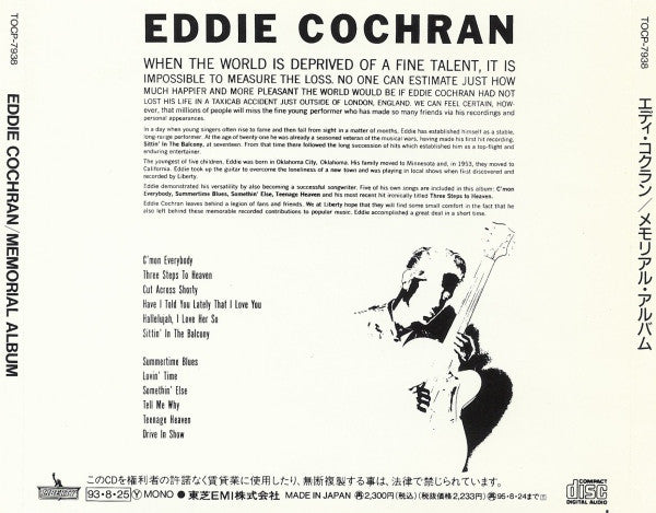 Eddie Cochran = Eddie Cochran - Memorial Album = メモリアル·アルバム (CD, Album, Mono)