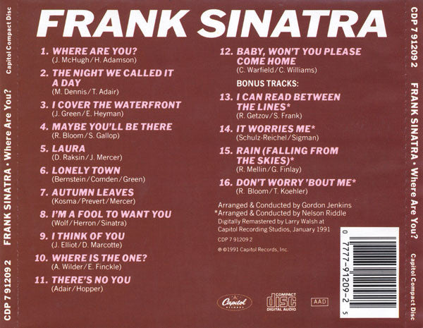 Frank Sinatra - Where Are You? (CD, Album, RM)