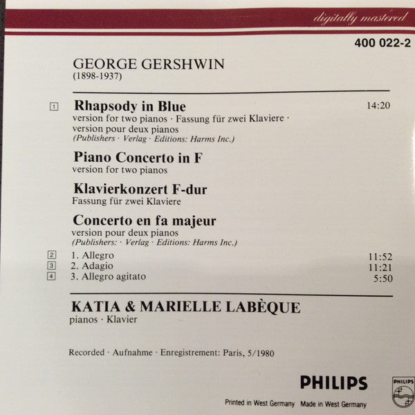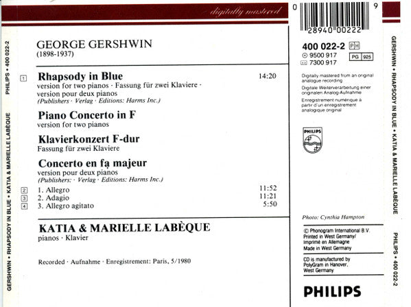 Matrix / Runout 400 022-2 03 # DL MADE IN W. GERMANY BY PDO