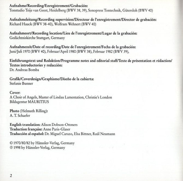 Johann Sebastian Bach - Cantatas BWV 38-40 (CD, RM)