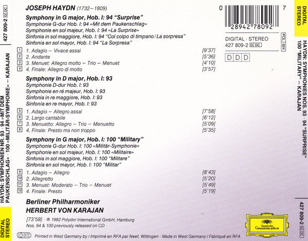 Joseph Haydn / Berliner Philharmoniker, Herbert von Karajan - Symphonien Nos. 93 94 »Mit Dem Paukenschlag ·Surprise «