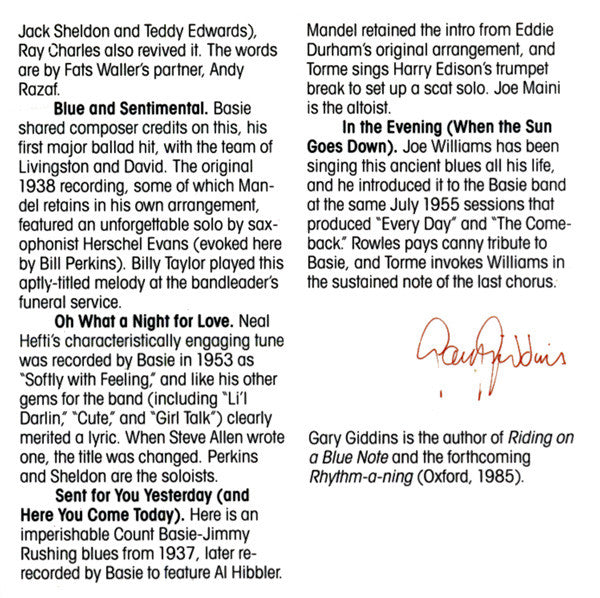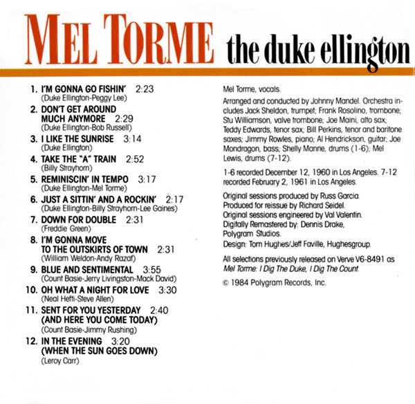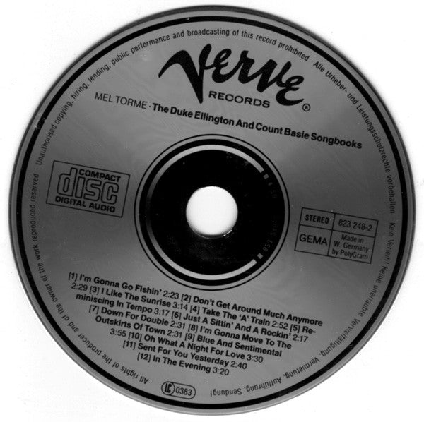 All selections previously released on Verve V6-8491 as "Mel Tormé: I Dig the Duke, I Dig the Count.