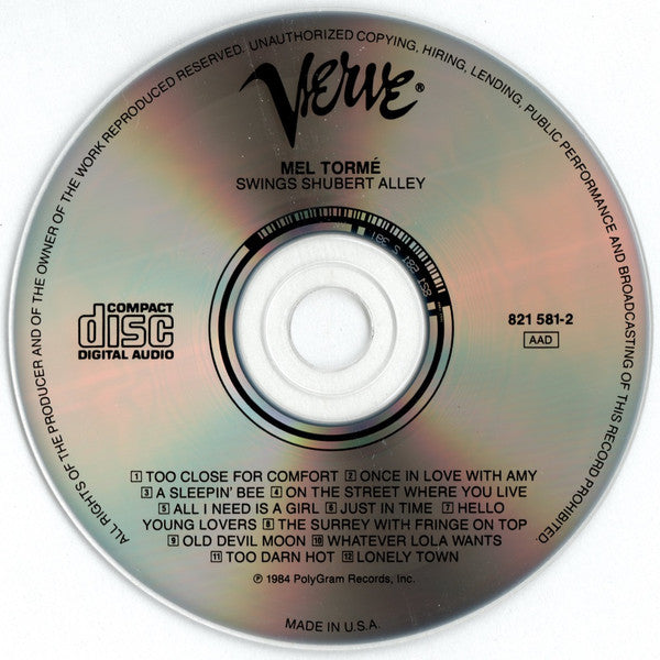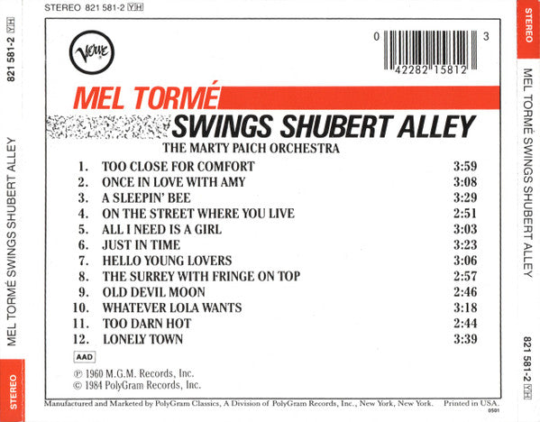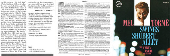 Mel Tormé, Marty Paich Orchestra - Swings Shubert Alley (CD, Album, RE, PMD)