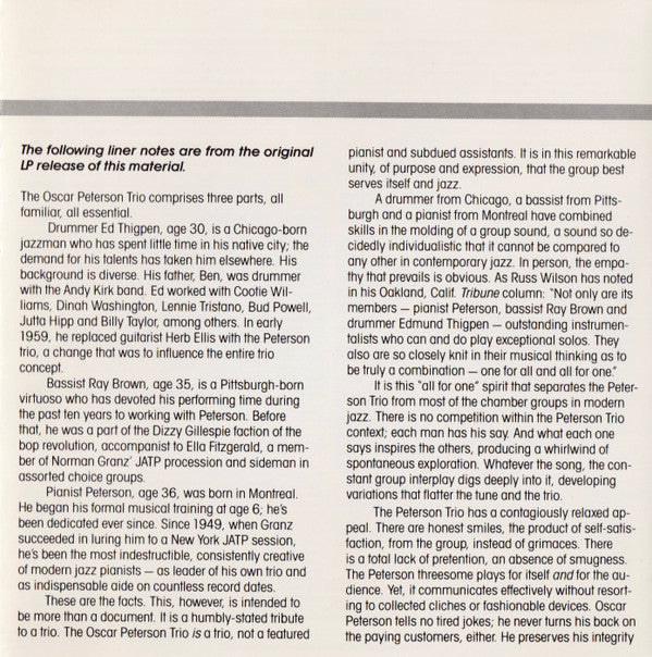 The Oscar Peterson Trio - The Trio : Live From Chicago (CD, Album, RE, RM)