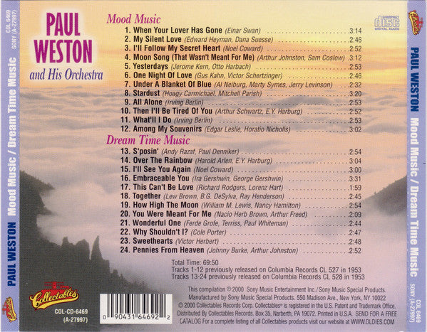 Paul Weston And His Orchestra - Mood Music / Dream Time Music (CD, Comp, Mono)