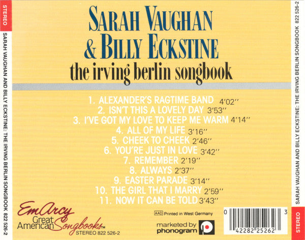 All selections previously released on Mercury MG 20316 as Sarah Vaughan and Billy Eckstine Sing The Best Of Irving Berlin.