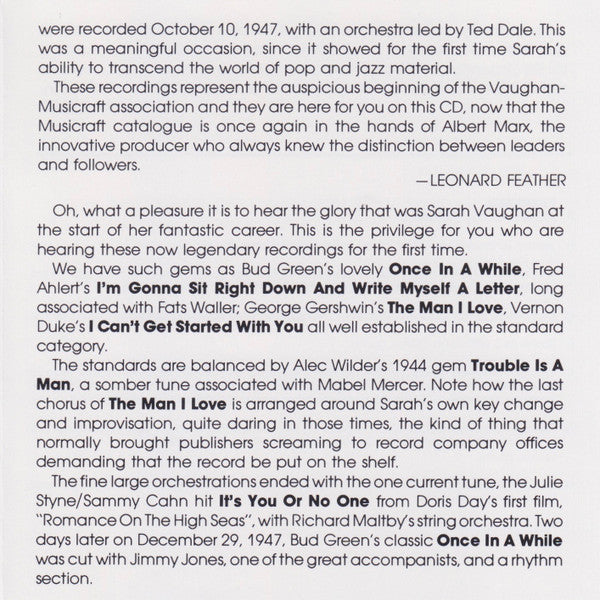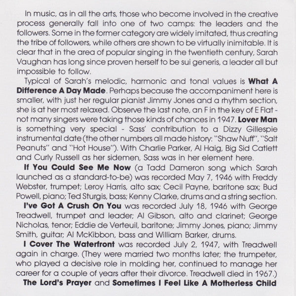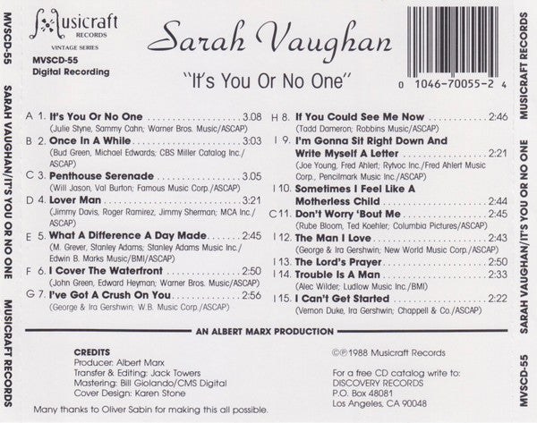 Sarah Vaughan - It's You Or No One (CD, Comp, Mono, RE)