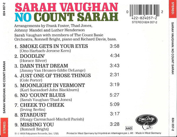Sarah Vaughan - No Count Sarah (CD, Album, RE, RM)