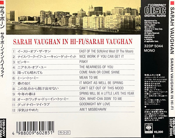 Sarah Vaughan - Sarah Vaughan In Hi-Fi (CD, Album, Mono, RE)