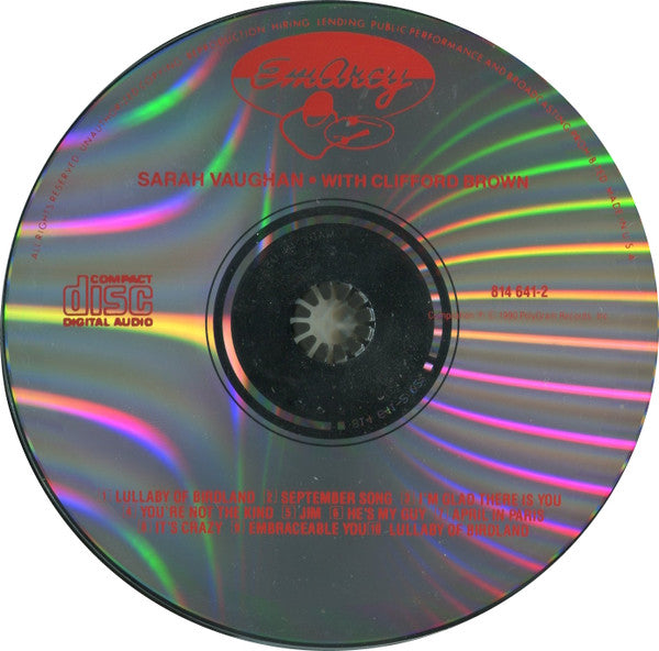Sarah Vaughan With Clifford Brown - Sarah Vaughan With Clifford Brown (CD, Album, RE, RM)