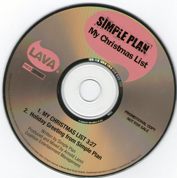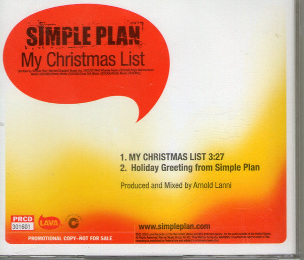 Simple Plan - My Christmas List (CD, Single, Promo)