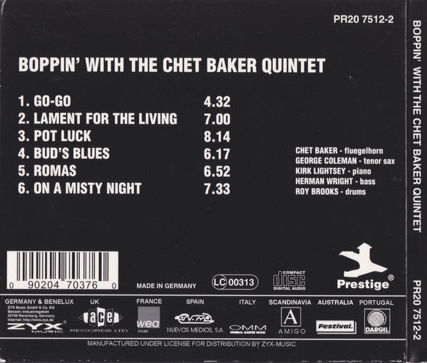 The Chet Baker Quintet - Boppin' With The Chet Baker Quintet (CD, Album, RE, RM, Dig)