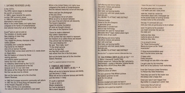 Lyric reprint ©1991 Beat Nigs Music (ASCAP) except "California Über Alles", ©1991 Beat Nigs Music (ASCAP) / ©1979 Decay Music (BMI)