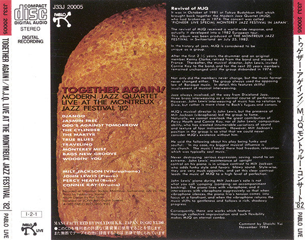 The Modern Jazz Quartet - Together Again! Live At The Montreux Jazz Festival '82 (CD, Album)