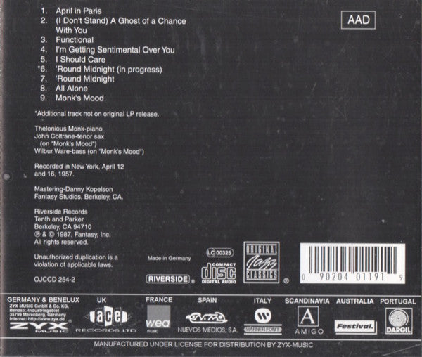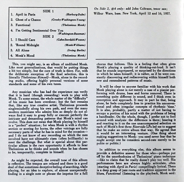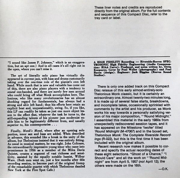 Thelonious Monk - Thelonious Himself (CD, Album, RE, RM, RP)
