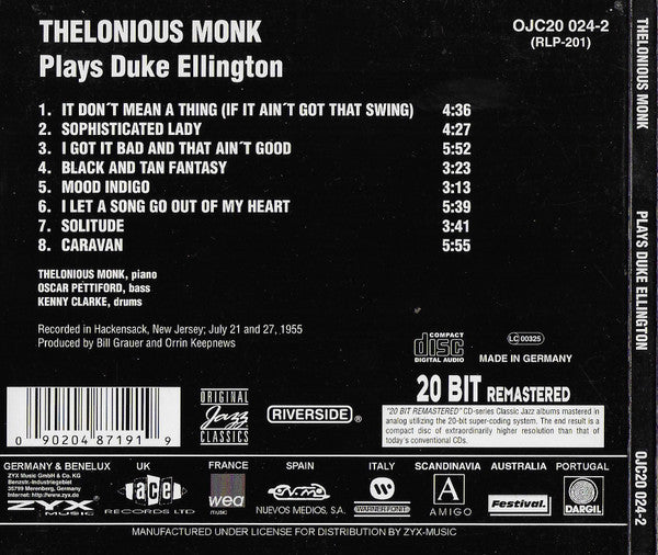 Thelonious Monk - Thelonious Monk Plays Duke Ellington (CD, Album, RE, 20 )