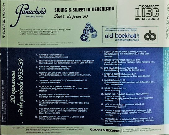 All recordings on this Compact Disc come from the archive of the Hollandsche Decca Distributie. "Panachord" is a trademark of the Hollandsche Decca Distributie B.V.