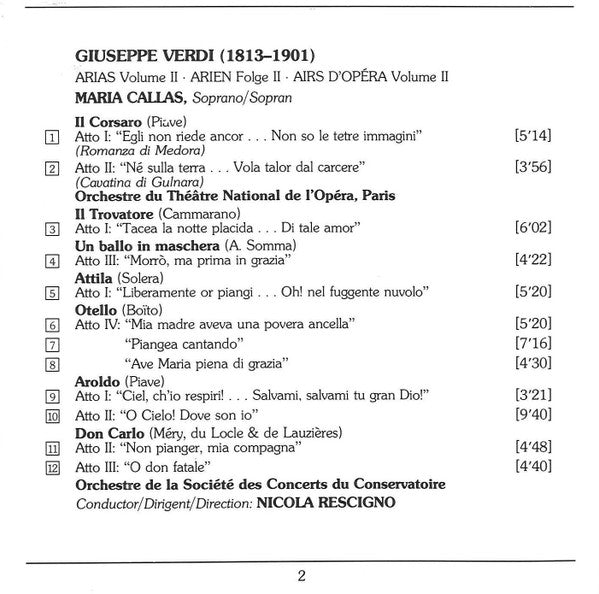 Giuseppe Verdi, Maria Callas - Arias ∙ Arien ∙ Airs D'Opéras II (CD, Comp, RM)
