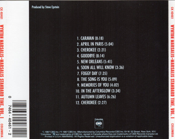 Wynton Marsalis - Marsalis Standard Time, Vol. 1 (CD, Album, RP, Pit)